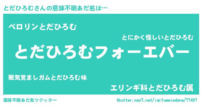 | 欧米人風あだ名 | 『とだひろむクリステル』 |