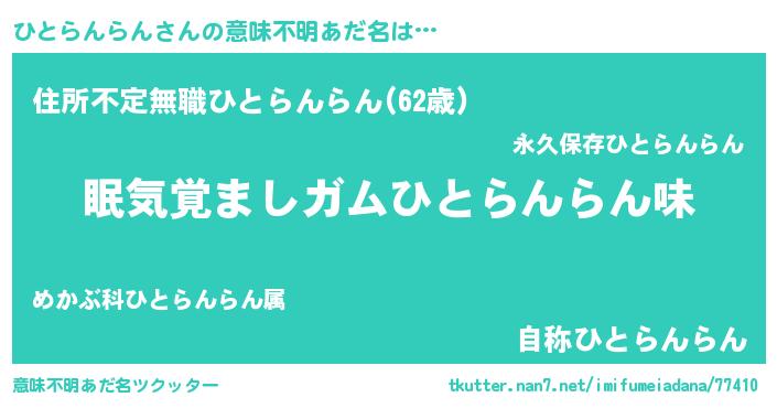 | ヘコむあだ名 | 『ひとらんらん(笑)』『ひとっぺ』 |