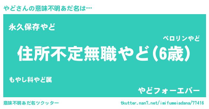 | 胡散臭い通販商品みたいなあだ名 | 『あなたにだけ特別に提供する100年もののヴィンテージワイン…その名も「やど」』 |