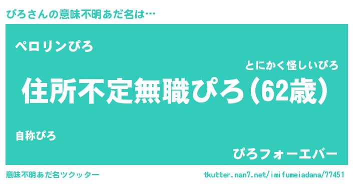 | 男性向けラノベタイトル風あだ名 | 『この素晴らしい世界にぴろを!』 |
