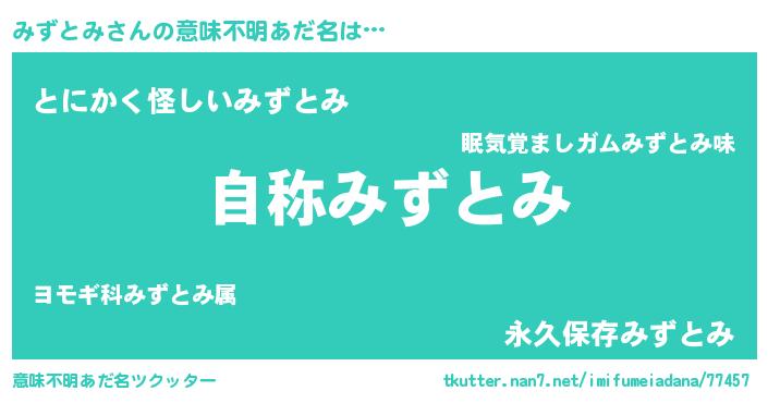 | 欧米人風あだ名 | 『みずとみ・ステッグマイヤー』 |