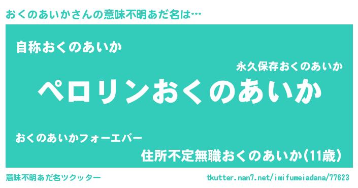 | 女子向けラノベタイトル風あだ名 | 『おくのあいか姫と円卓の騎士』 |