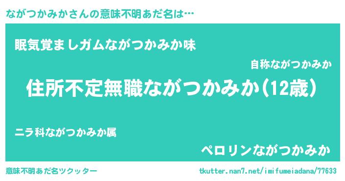 | 女子向けラノベタイトル風あだ名 | 『ながつかみかが死なない童話 林檎のながつかみかの診療簿』 |