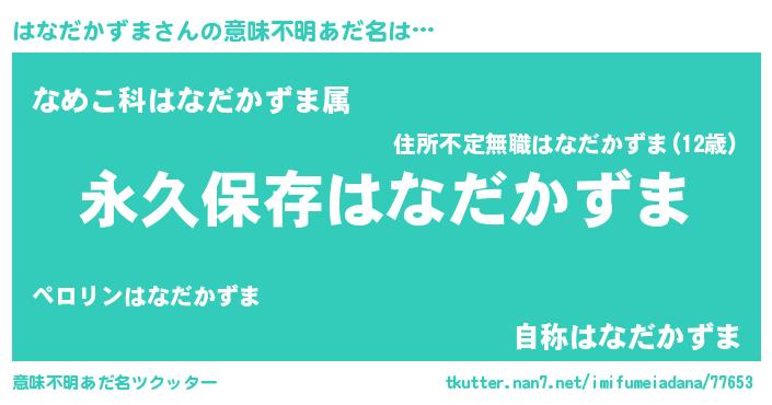 | 肩書あだ名 | 『はなだかずま先生』『はなだかずま少尉』 |