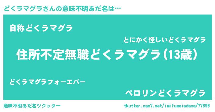 | 男性向けラノベタイトル風あだ名 | 『どくラマグラに滅ぼされるだけの簡単なお仕事です』 |