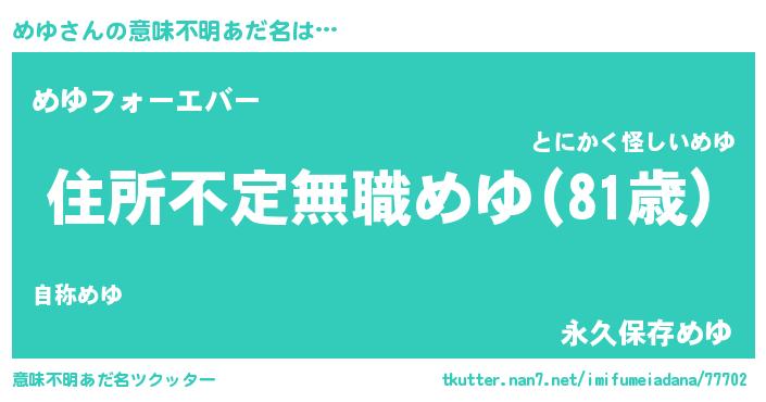| 料理風あだ名 | 『めゆのカルパッチョ風』 |