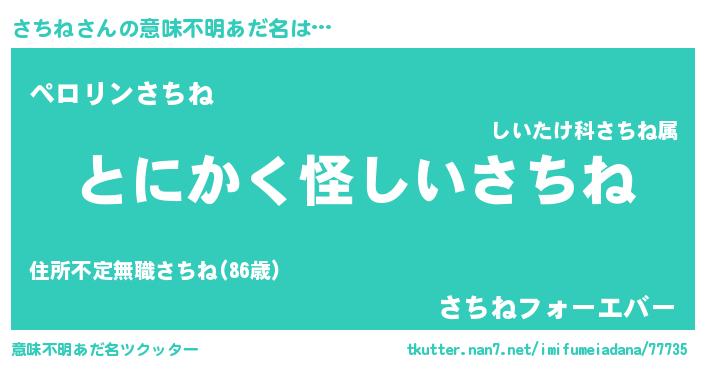 | 男性向けラノベタイトル風あだ名 | 『さちねの嫁は女の子じゃないと思った?』 |