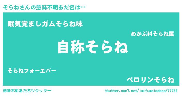 | 男性向けラノベタイトル風あだ名 | 『Re:そらねから始める異世界生活』 |