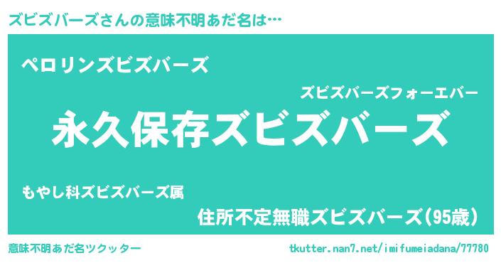 | 男性向けラノベタイトル風あだ名 | 『ズビズバーズという概念が存在しない退屈な世界 』 |