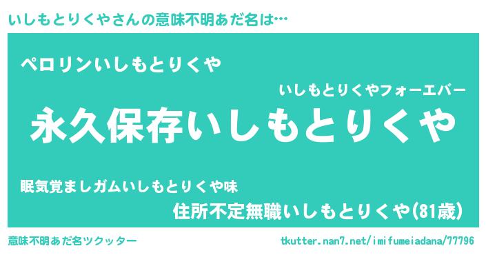 | 胡散臭い通販商品みたいなあだ名 | 『来世でも幸せになれる健康食品…その名も「いしもとりくや」』 |