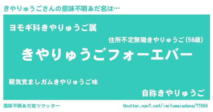 | 欧米人風あだ名 | 『きやりゅうご・ステッグマイヤー』 |