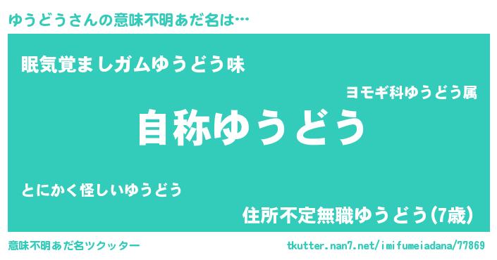 | 男性向けラノベタイトル風あだ名 | 『Re:ゆうどうから始める異世界生活』 |