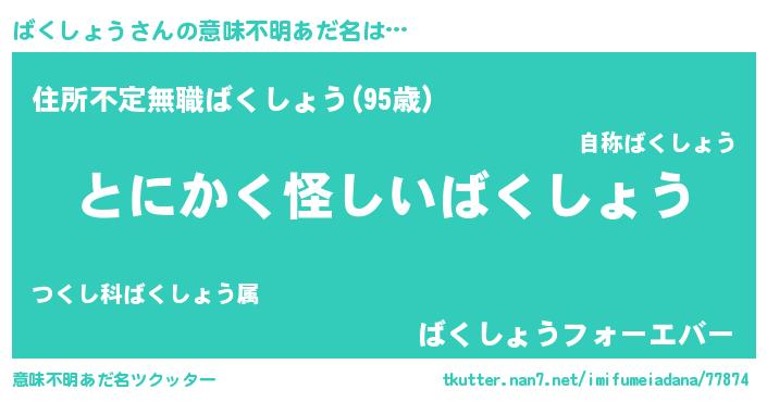 | 女子向けラノベタイトル風あだ名 | 『ばくしょう様がみてる』 |