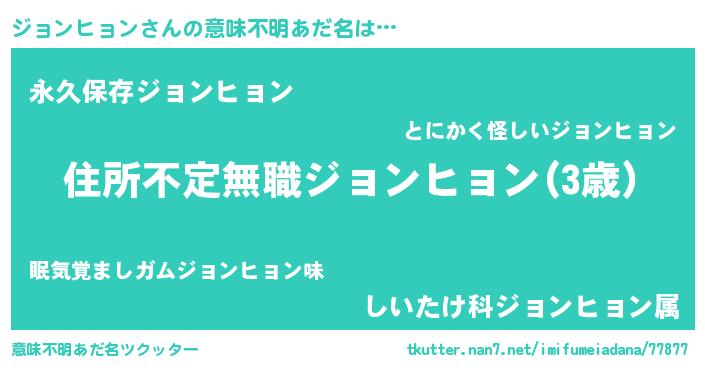 男性向けラノベタイトル風あだ名 | 『この素晴らしい世界にジョンヒョンを!』 |