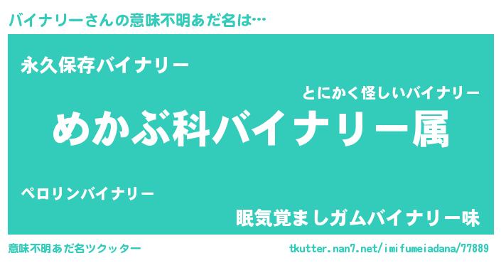 | 胡散臭い通販商品みたいなあだ名 | 『絶対に幸福をもたらす健康食品…その名も「バイナリー」』 |