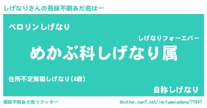 | 男性向けラノベタイトル風あだ名 | 『シゲナリスレイヤー』 |