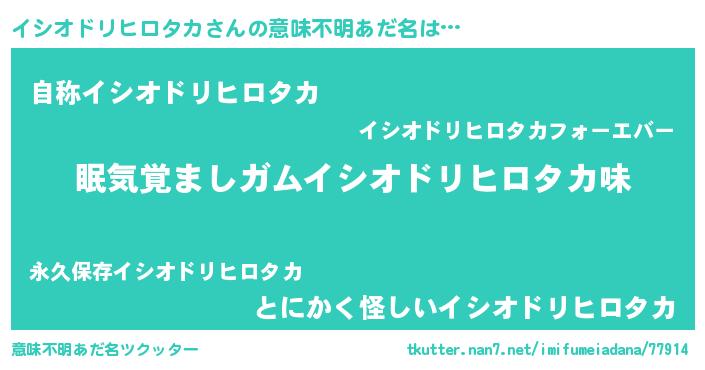 | 胡散臭い通販商品みたいなあだ名 | 『100人中100人が認めたイリジウム磁石…その名も「イシオドリヒロタカ」』 |