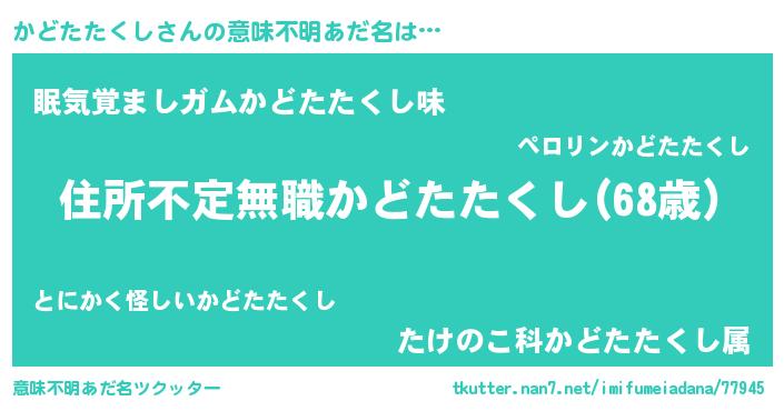 | ヒーロー風カッコイイあだ名 | 『仮面カドダー』『スーパーカドタタクシ』 |