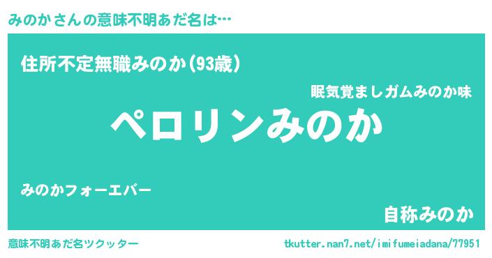 | 男性向けラノベタイトル風あだ名 | 『緋弾のミノカ』『魔弾の王とみのか』 |