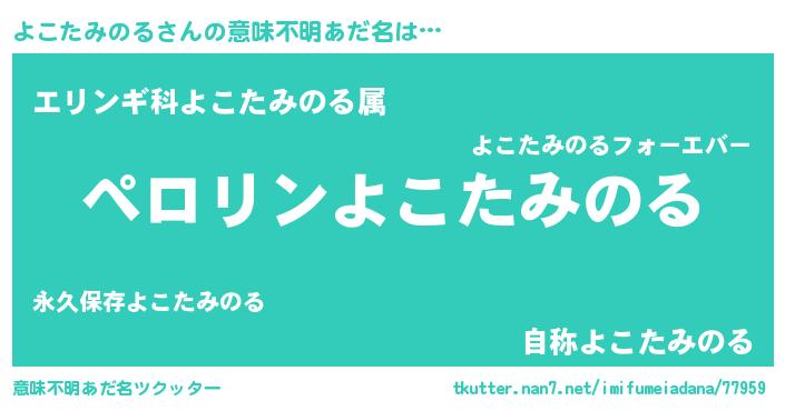 | 男性向けラノベタイトル風あだ名 | 『よこたみのるの憂鬱』 |