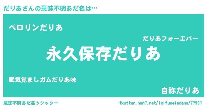 | 胡散臭い通販商品みたいなあだ名 | 『来世でも幸せになれる健康食品…その名も「だりあ」』 |