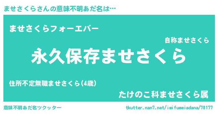 | 伝説のあだ名 | 『古より伝わる暗殺者ませさくら』 |