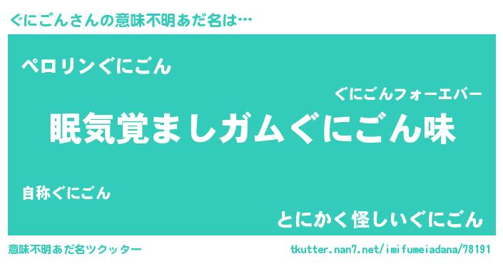 | 女子向けラノベタイトル風あだ名 | 『ぐにごん恋絵巻』『ぐにごん様がみてる』 |
