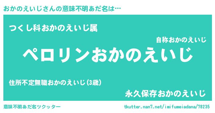 | 胡散臭い通販商品みたいなあだ名 | 『億万長者になれる霊験あらたかなお札…その名も「おかのえいじ」』 |