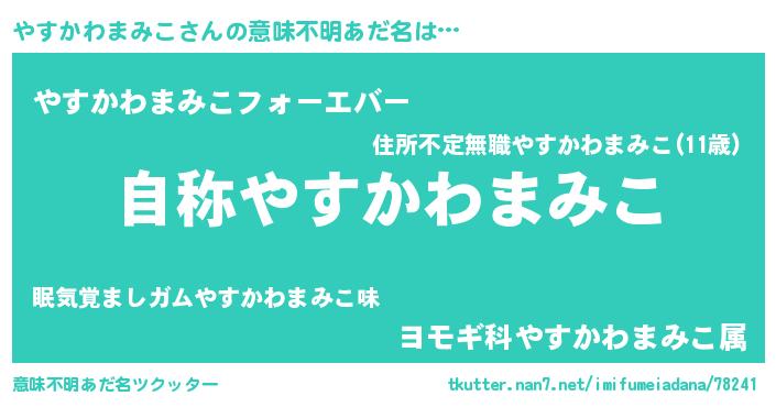 | 男性向けラノベタイトル風あだ名 | 『魔法科高校のやすかわまみこ』 |
