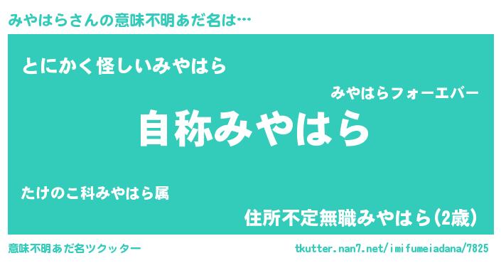 | ヒーロー風カッコイイあだ名 | 『究極戦士ミヤハラ』『銀牙騎士ミヤ』 |