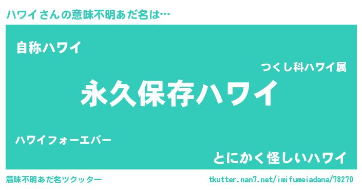| ヒーロー風カッコイイあだ名 | 『ネオハワイ』『超時空戦士ハワイ』 |