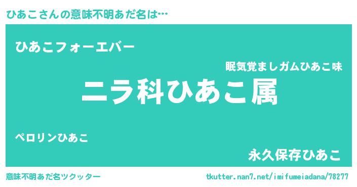 | ヒーロー風カッコイイあだ名 | 『ウルトラひあこマン』『ネオヒアコ』 |