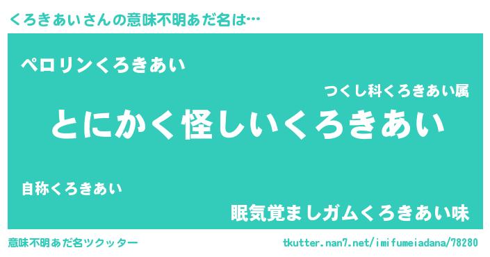 | 男性向けラノベタイトル風あだ名 | 『くろきあいの嫁は女の子じゃないと思った?』 |