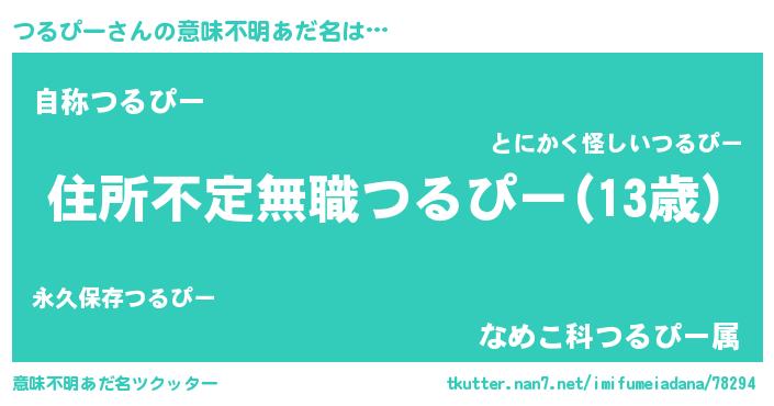 | 男性向けラノベタイトル風あだ名 | 『魔弾の王とつるぴー』 |