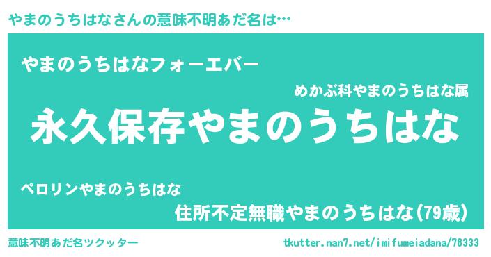 | 男性向けラノベタイトル風あだ名 | 『やまのうちはなという概念が存在しない退屈な世界 』 |