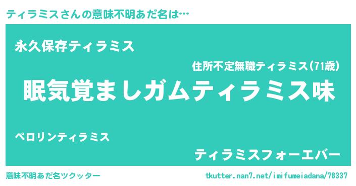 | 女子向けラノベタイトル風あだ名 | 『ティラミス恋絵巻』 |