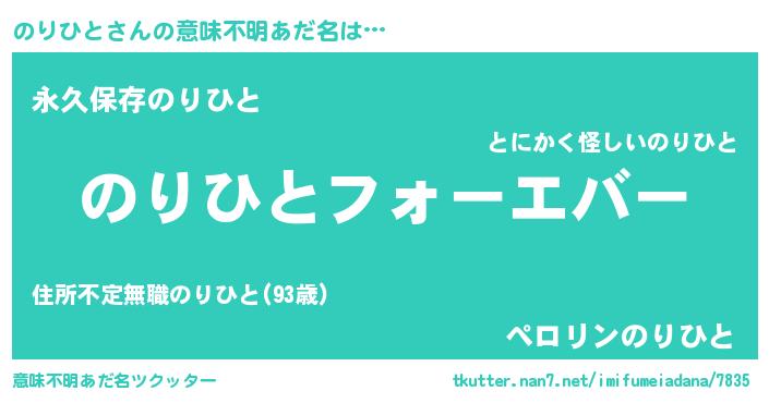 | ヒーロー風カッコイイあだ名 | 『ウルトラのりひとマン』『ネオノリヒト』 |