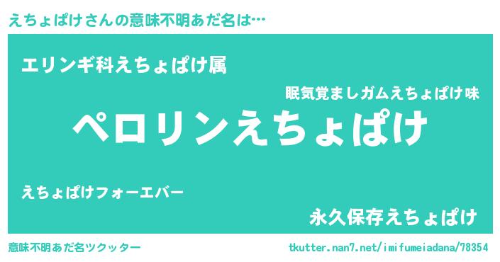 | 女子向けラノベタイトル風あだ名 | 『誰かこのえちょぱけを説明してください! ~契約から始まるウェディング~』 |