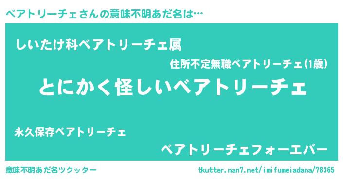 | 男性向けラノベタイトル風あだ名 | 『ベアトリーチェの嫁は女の子じゃないと思った?』 |