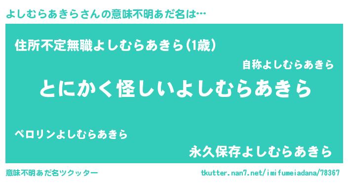 | ヘコむあだ名 | 『よしぷりん』『よしむらあきら(小並感)』 |