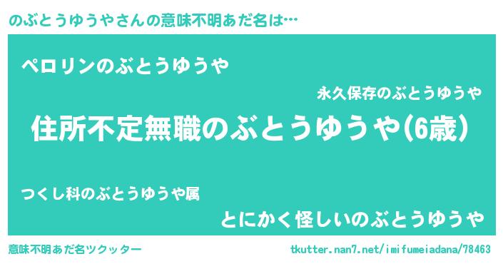 | 男性向けラノベタイトル風あだ名 | 『この素晴らしい世界にのぶとうゆうやを!』 |
