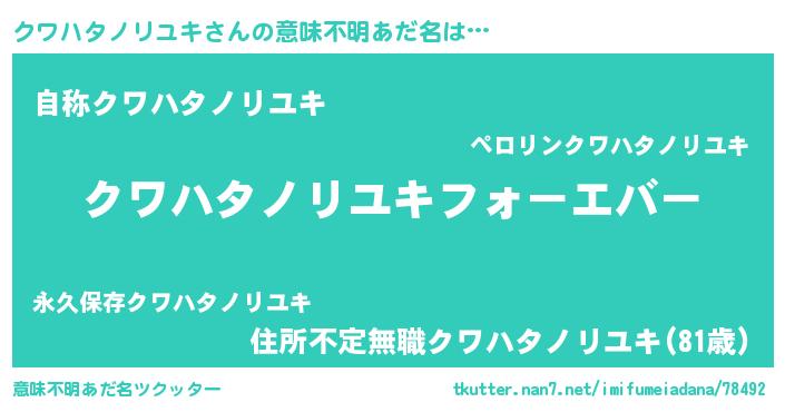| ファンタジー風あだ名 | 『エターナルクワハタノリユキー』 |