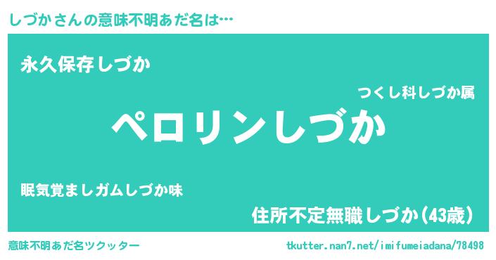 | ポケモン風あだ名 | 『シヅチュウ』『ゼニシヅ』 |