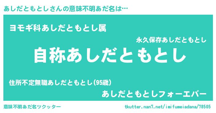 | 肩書あだ名 | 『あしだともとし総統』 |