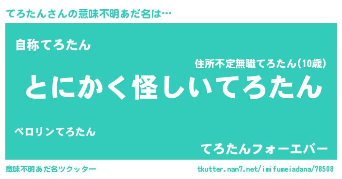 | 男性向けラノベタイトル風あだ名 | 『てろたんの嫁は女の子じゃないと思った?』 |