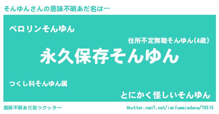| 胡散臭い通販商品みたいなあだ名 | 『絶対に幸福をもたらす健康食品…その名も「そんゆん」』 |