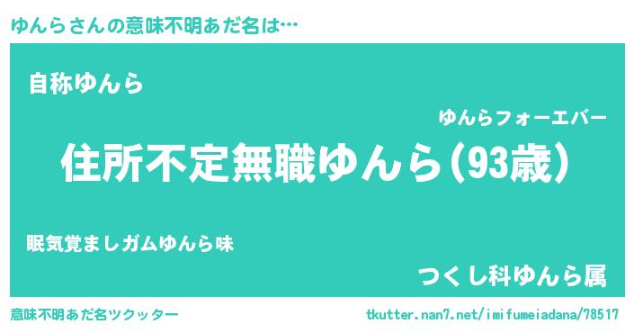 | 女子向けラノベタイトル風あだ名 | 『乙女ゲームの破滅フラグしかない悪役ゆんらに転生してしまった…』 |