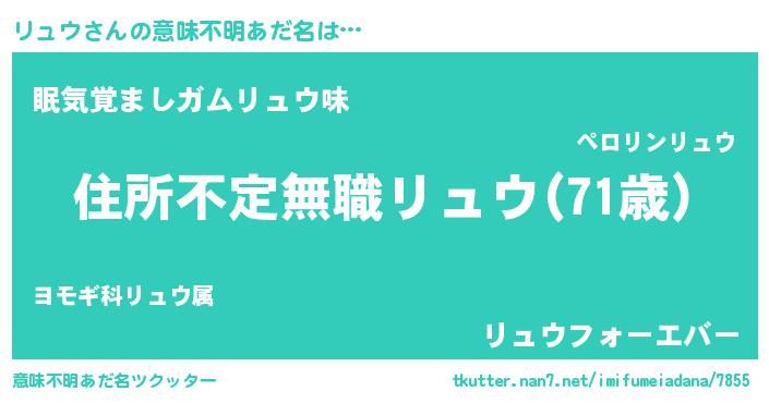 | 男性向けラノベタイトル風あだ名 | 『この素晴らしい世界にリュウを!』 |