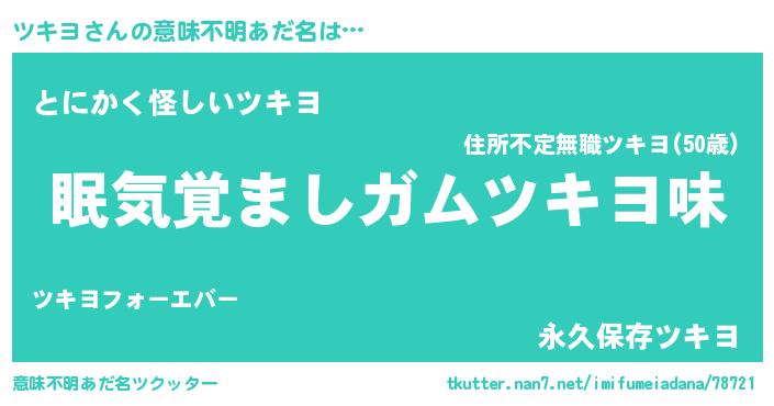 | 女子向けラノベタイトル風あだ名 | 『ツキヨ恋絵巻』『ツキヨは平凡を望む』 |