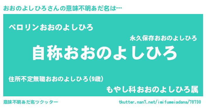 | 男性向けラノベタイトル風あだ名 | 『Re:おおのよしひろから始める異世界生活』 |